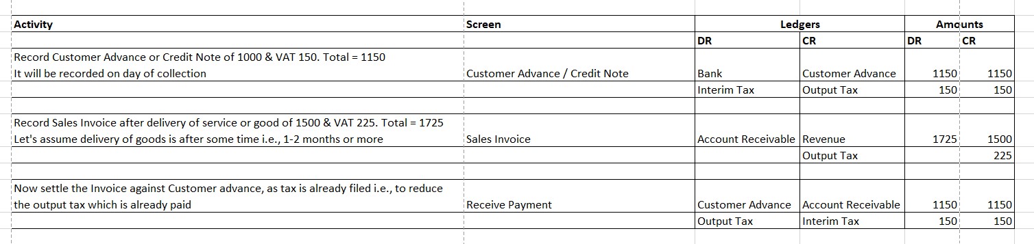 In the above screenshot, the tax amount is added to an interim tax ledger which is later adjusted /reversed when the customer advance payment is adjusted against an Invoice.