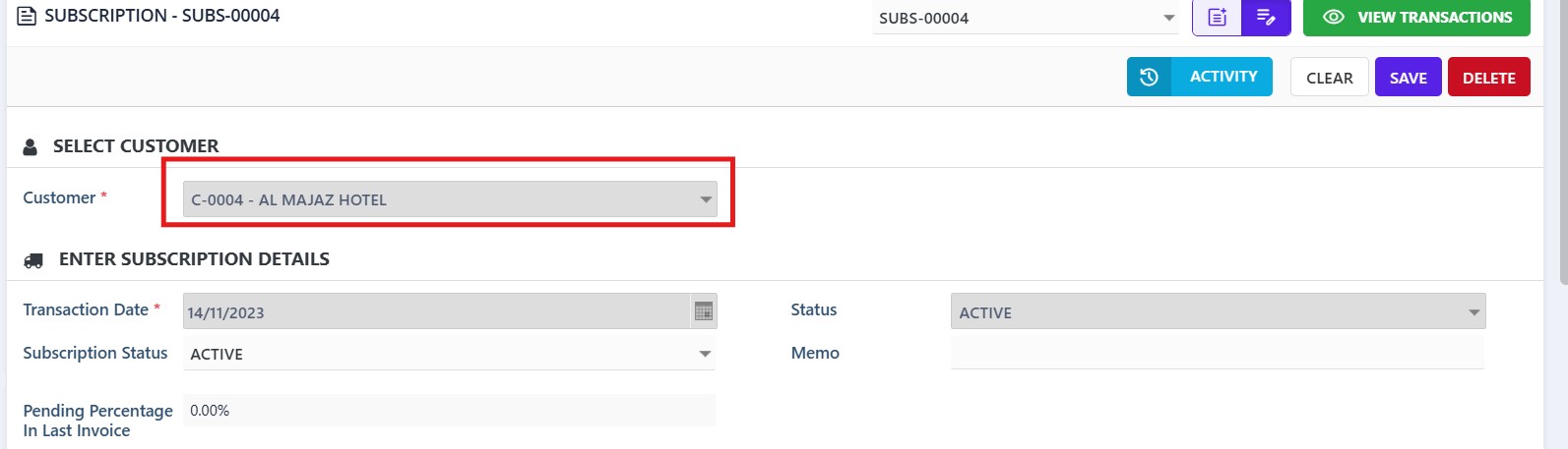 - At the end of the form after saving, you can check the subtotal and also the history for this client subscription: